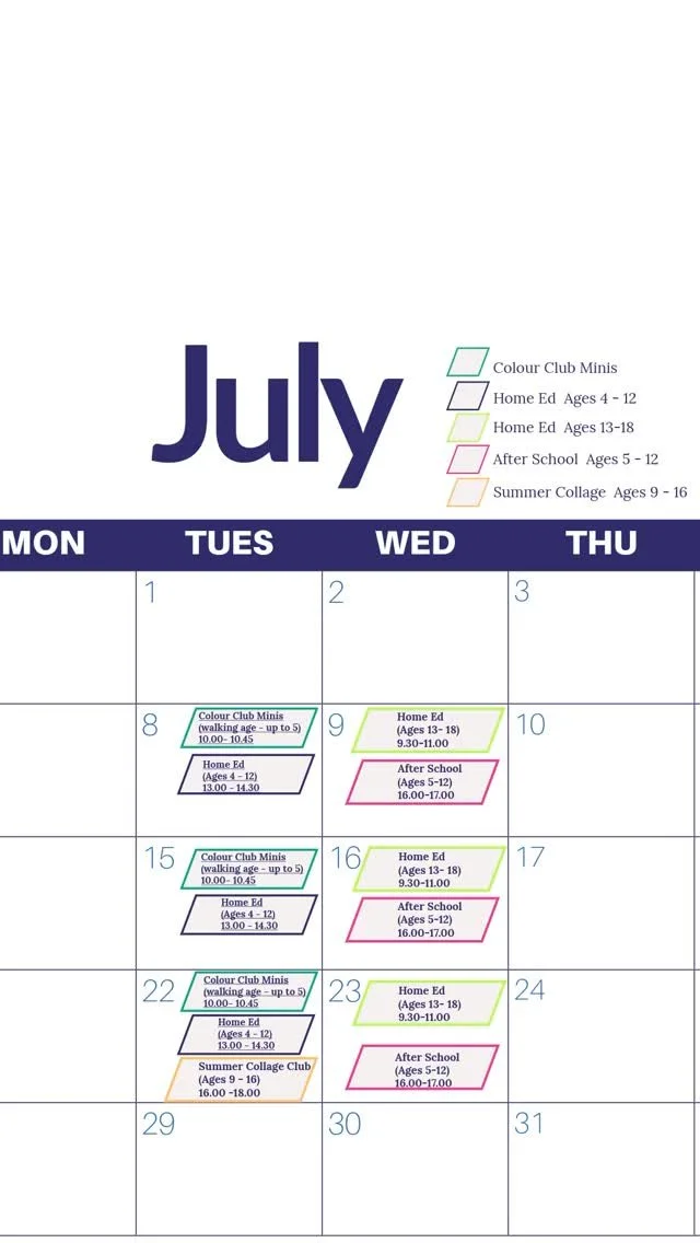 A fun, welcoming space where young creatives from toddlers to teens are free to explore, imagine, and express themselvesβno curriculum, no pressure. Just colourful materials, inspiring projects, and the pure joy of being creative.